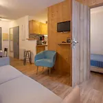 Sunny Appartement Centre Ville Vue Mont Blanc Balcon 3 Personnes van 25 m^2, gelegen op 1 km van het stadscentrum van Chamonix, biedt logeerkamers met uitzicht op de berg.